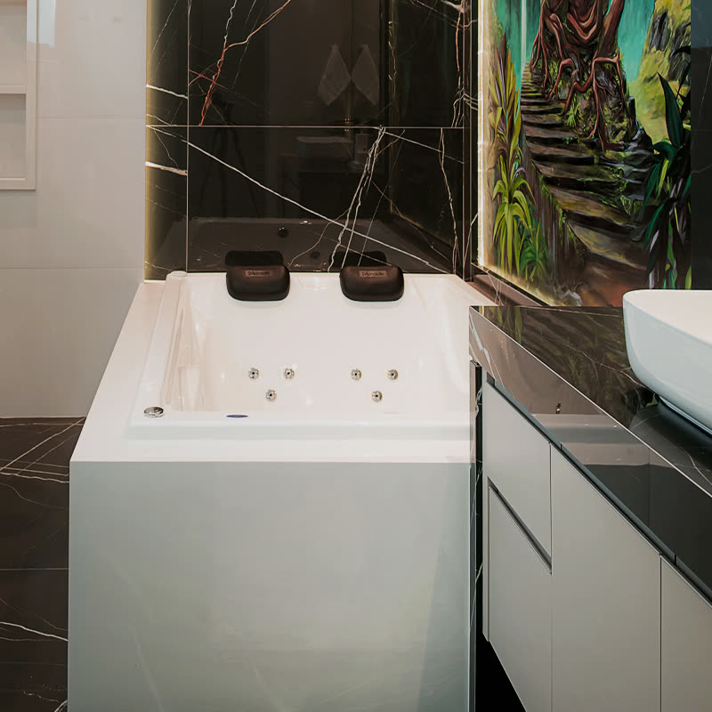 As banheiras retangulares duplas da Mondialle são projetadas para proporcionar momentos de relaxamento a dois, combinando elegância, ergonomia e tecnologia de ponta.